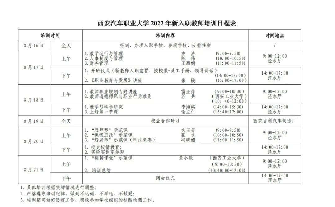 按照计划,新教师培训从17日开始将持续到21日。 培训期间,学校将组织开展《教学运用与管理》《职业教育与发展》《教师职业规划专题讲座》《教学与科学研究》《“双师型”示范课》《“课程思政”示范课》等讲座课程,并开展校史校情教育,还将前往西安吉利汽车制造厂,开展校企合作研习。