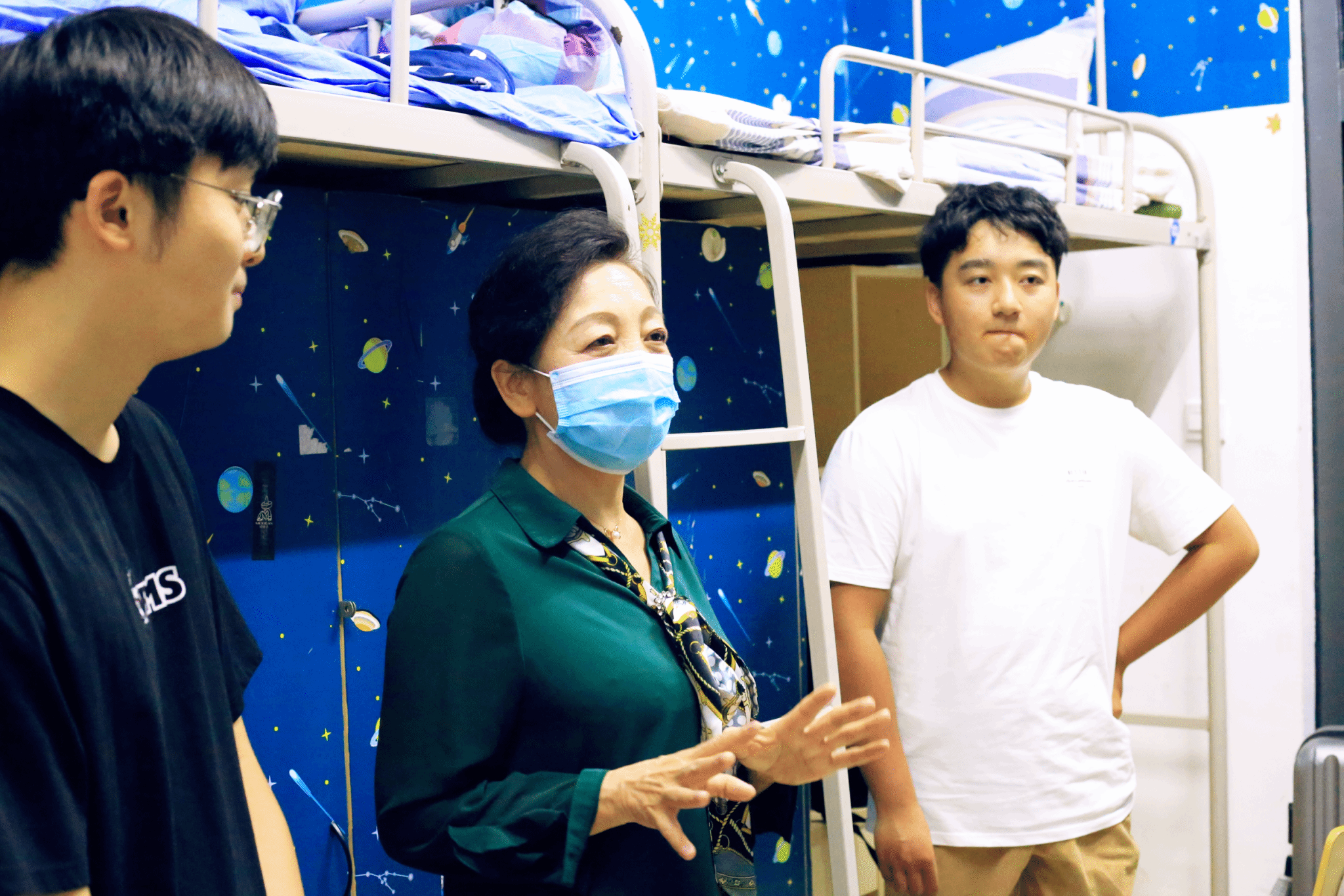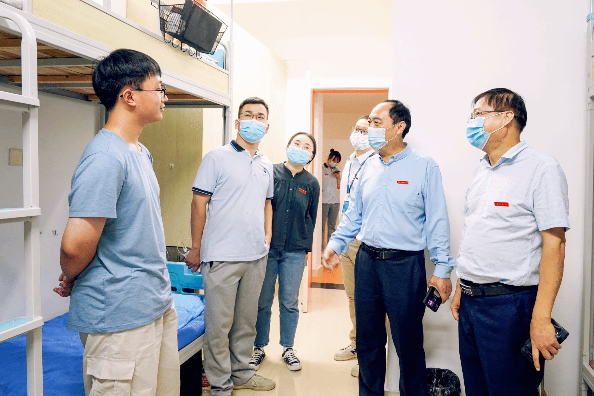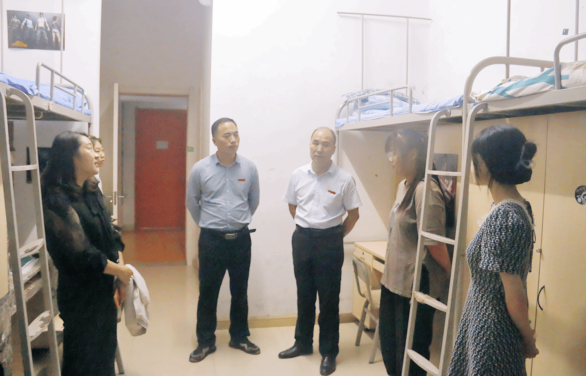 15日晚上7点半,校领导孙冰红、雷亚萍、张陵、乔祎、穆乾坤、赵国亮、赵军“兵分七路”,在部分职能部门、二级学院负责人的陪同下深入宿舍走访慰问新生 ,详细了解他们的入学生活状况,现场协调解决问题,勉励他们尽快适应新环境,为马上开启的大学生活做好准备。