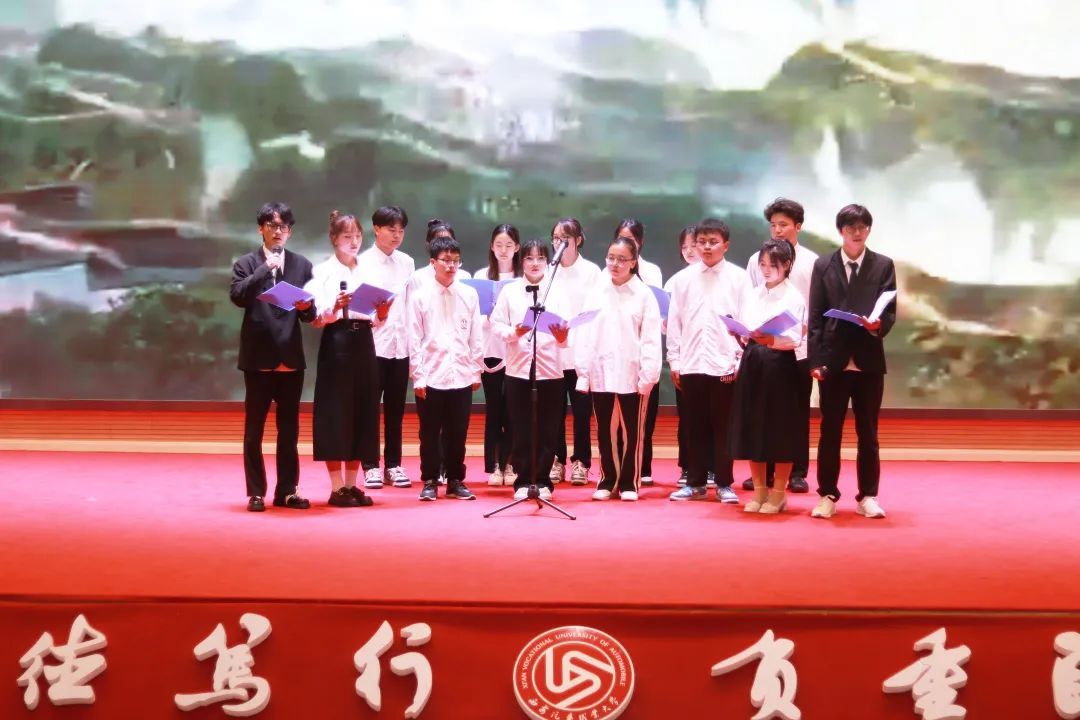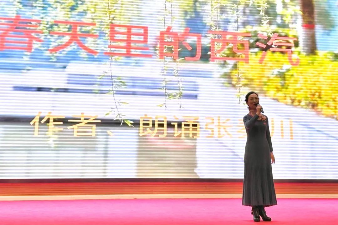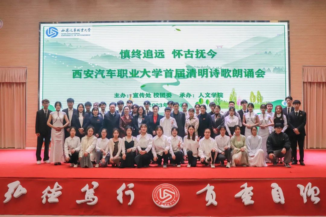 朗诵会分为“怀古抚今 诗话清明”、“慎终追远 缅怀先烈”和“礼赞春华 感恩西汽”三个篇章。活动中,同学们感悟清明,追思英雄,在缅怀先烈中赓续红色血脉,在铭记历史中汲取奋进力量。气清景明,万物生长,第三篇章伊始,人文学院张秦川院长的原创诗歌朗诵——《春天里的西汽》将活动推向高潮。本次活动受到了师生们的热烈欢迎,现场座无虚席。活动中也不乏同学们的原创精品,比如刘薇薇同学朗诵的《祭华夏先灵文》即是文学社赵振华同学的原创,文学社赵福森、许淙哲也为大家献上了王梦婷同学的原创诗歌——《春意暖西汽》,此外还有李轩同学的古体诗《暮春叹》。