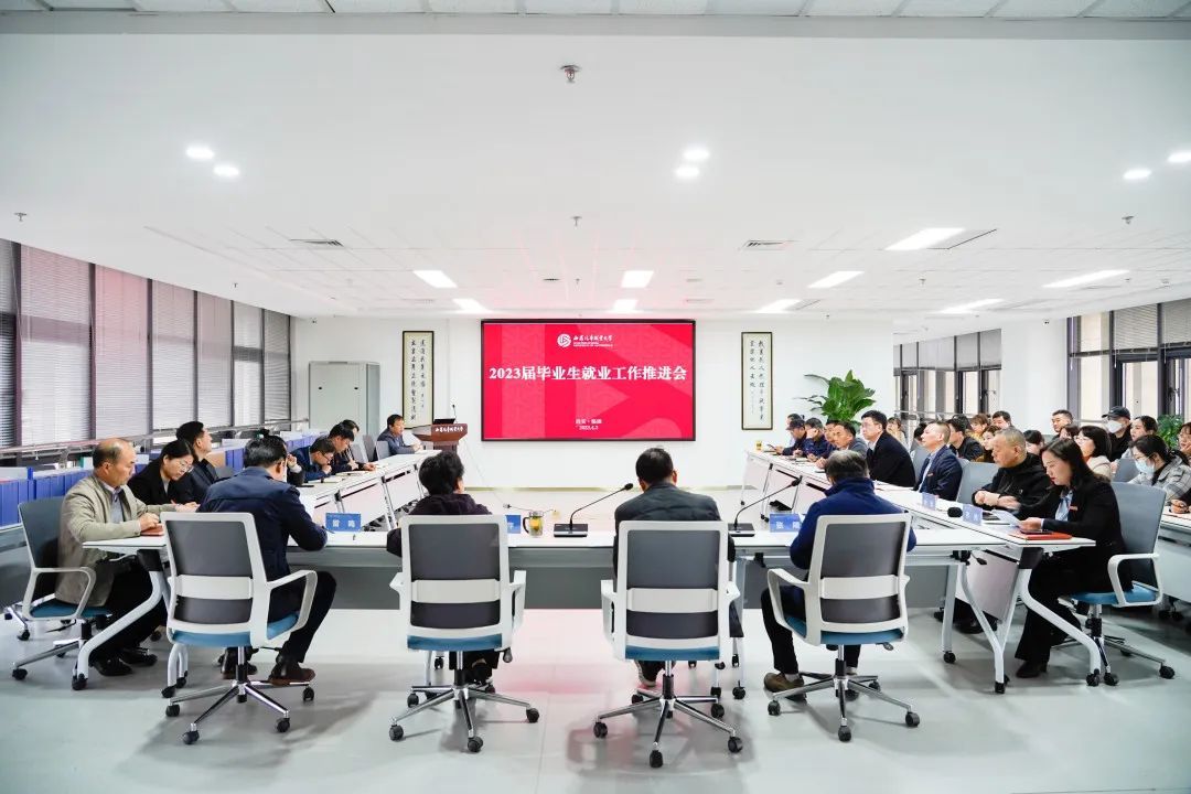 校长助理穆乾坤,分析当前我校就业工作近期存在的问题,并对《新宝2登录线路检测中心2023届毕业生就业工作实施方案》和《新宝2登录线路检测中心2023年“访企拓岗促就业”专项行动实施方案》做详细解读,同时将2023届毕业生的就业任务分解到具体部门,责任落实到人,并对就业工作做重点强调。