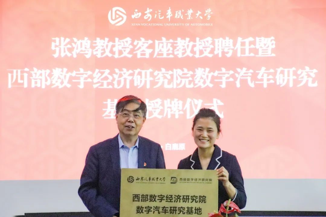 为充分发挥校内外高层次人才专业水平和科研能力,积极推进我校教育教学改革,加强师资队伍建设,努力提高人才培养质量。5月26日,在我校白鹿原校区举行张鸿客座教授聘任暨西部数字经济研究院数字汽车研究基地授牌仪式。
