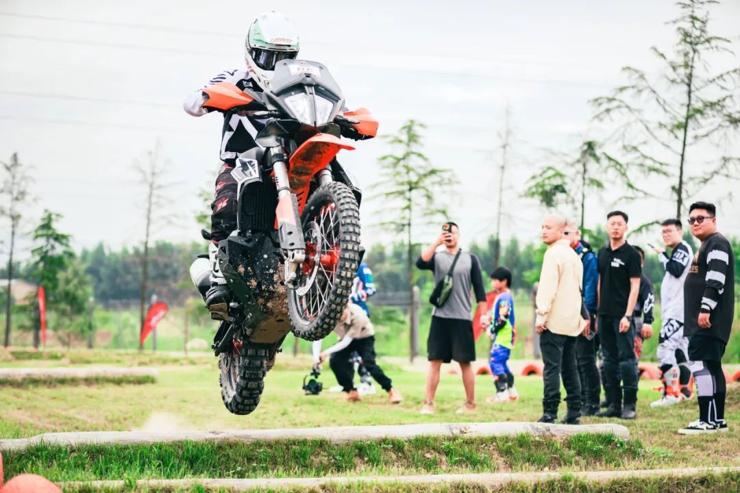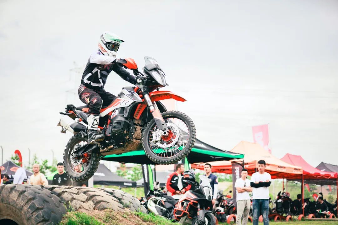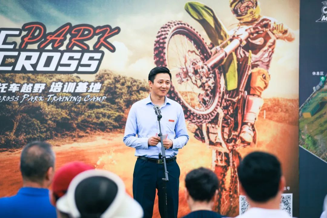 陕西省汽车摩托车协会主席杨威致辞,达喀尔拉力车手张敏及场地教官大虎(KTM官方教练)进行专业技术展示。