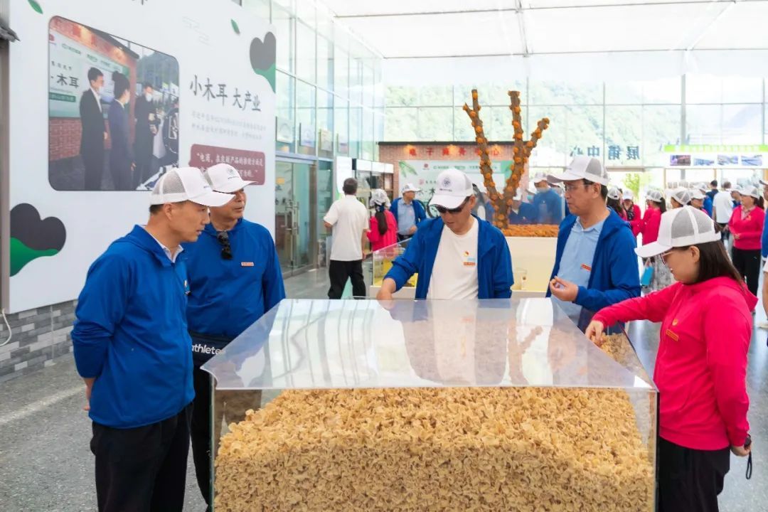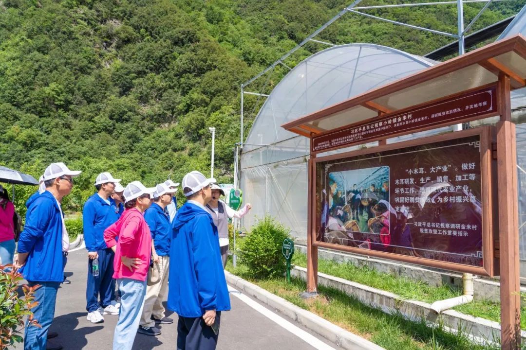 活动第一天,我校一行人到柞水县小岭镇金米村实地调研“小木耳大产业”乡村振兴情况。盛夏时节,金米村的风光格外美丽,青山叠翠、碧水清幽、草木葳蕤、游人如织,两山夹峙的社川河畔,一座座木耳大棚在阳光照射下明光耀目。学员们集体参观了木耳展销中心、木耳产业园,了解当地木耳种植和产业发展情况。“乡村振兴,关键是产业要振兴。”金米村地处秦岭腹地,山大沟深土薄石多,曾是小岭镇有名的贫困村。通过“支部引领、集体带动、党员示范、群众参与”的方式,金米村因地制宜走绿色发展之路,把小木耳办成了大产业,实现了脱贫致富,探索出一条乡村全面振兴的康庄大道。木耳产业提升了金米村的名气,改善了村里的环境,山清水秀的生态环境吸引了不少外地人前来旅游,小小山村变得越来越热闹。小小一片木耳,富了一方百姓。如今,金米村人以发展壮大木耳产业为依托,正信心满满地奔赴在乡村振兴的道路上。看着眼前白墙灰瓦的民居、崭新的柏油路、碧波荡漾的池塘、闪着银光的木耳种植大棚,宛若画境,学员们不禁为这个秦岭深处已是旧貌换新颜的小山村而惊叹。