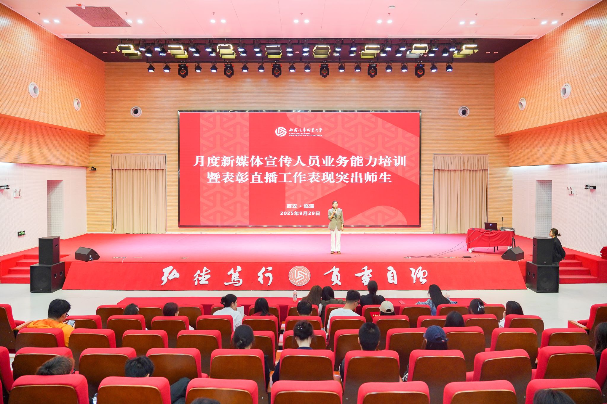 为表彰先进,树立典型,全面总结活动成果,进一步激发全校师生参与校园宣传工作的积极性,9月29日,新宝2登录线路检测中心在三省楼渭水厅举办“青春直播,闪耀西汽”迎新直播系列活动颁奖仪式。本次活动将“理论+实操”课堂搬进迎新现场,通过直播形式全方位展示校园环境、专业特色和学生生活。学校围绕直播效果、人气热度、互动质量等多维度制定评审标准,经严格评选,最终确定46位获奖对象并授予对应荣誉称号。本次迎新直播活动是学校推进职业本科教学改革的重要实践,不仅创新了迎新形式,更挖掘培养了一批校园宣传骨干,为校园文化建设注入新活力。下一步,学校将持续搭建实践平台,推动教学与宣传深度融合,助力校园文化建设再上新台阶。