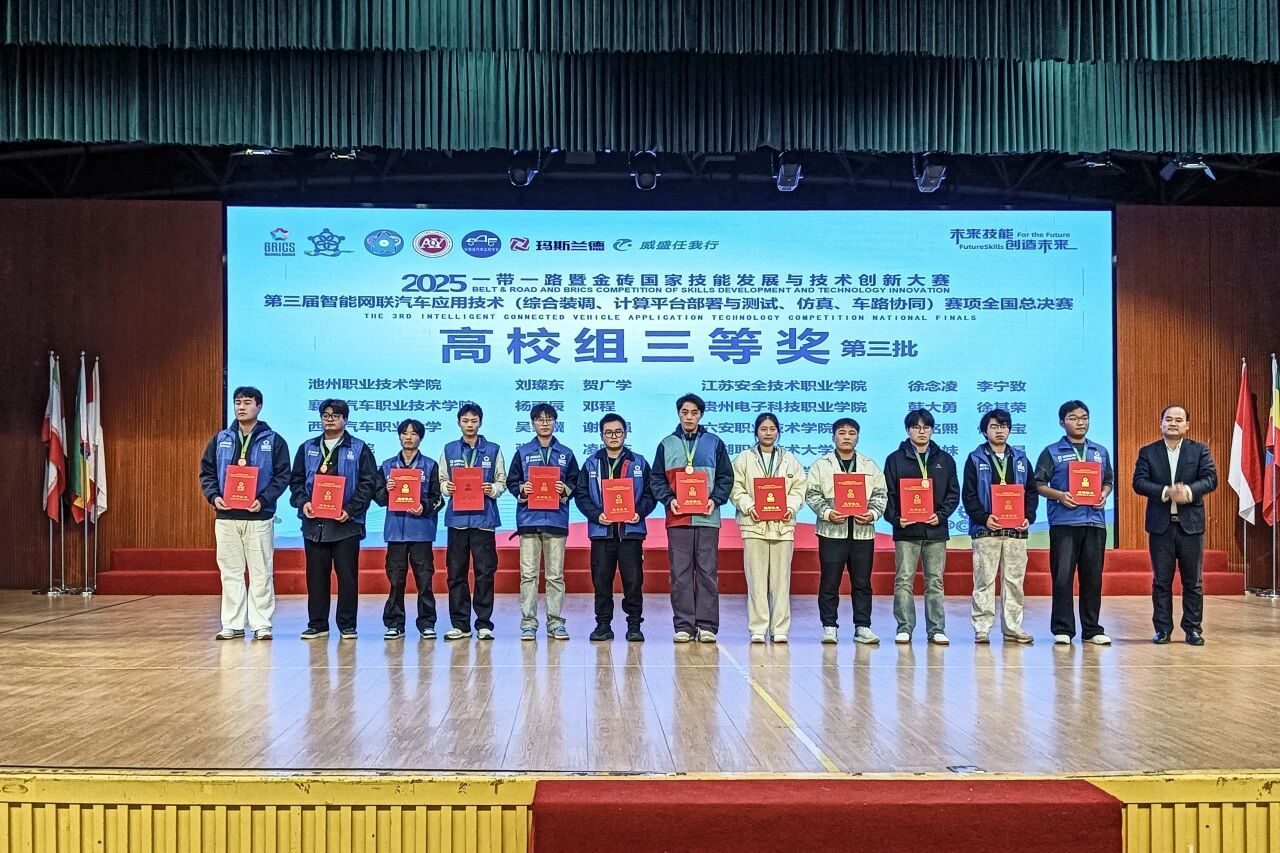 近日,2025一带一路暨金砖国家技能发展与技术创新大赛,第三届智能网联汽车应用技术(综合装调、计算平台部署与测试仿真、车路协同)赛项全国总决赛落幕,新宝2登录线路检测中心智能汽车学院学生代表队展现卓越风采,荣获全国高校组三等奖。