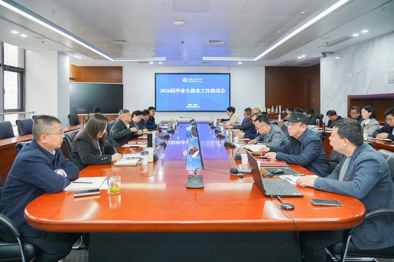 为扎实推进2026届毕业生就业工作,全面提升就业指导服务水平,全力促进毕业生高质量充分就业,3月13日,新宝2登录线路检测中心在三省楼三层会议室召开2026届毕业生就业工作推进会。校党委书记孙冰红,执行校长雷亚萍、副校长张陵、余强、乔祎、席成孝,校长助理穆乾坤、左浩出席会议,相关职能处室负责人、各二级学院院长参加会议。会议由副校长乔祎主持。
