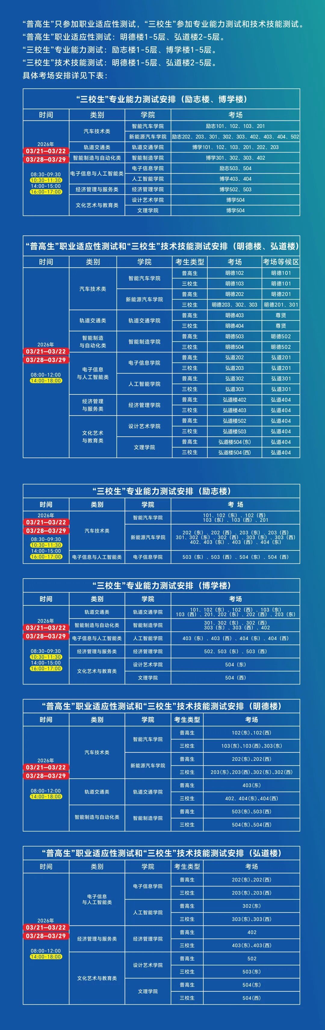 1.测试资格:在3月4日8:00—3月18日18:00,通过我校分类考试招生报名管理系统完成专业志愿填报,并成功打印准考证的考生。本次测试不收取任何费用。