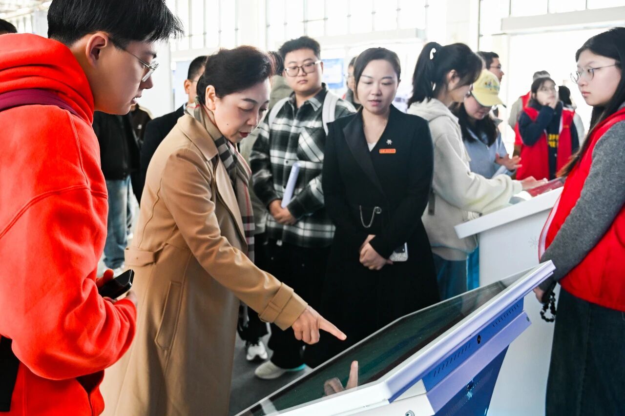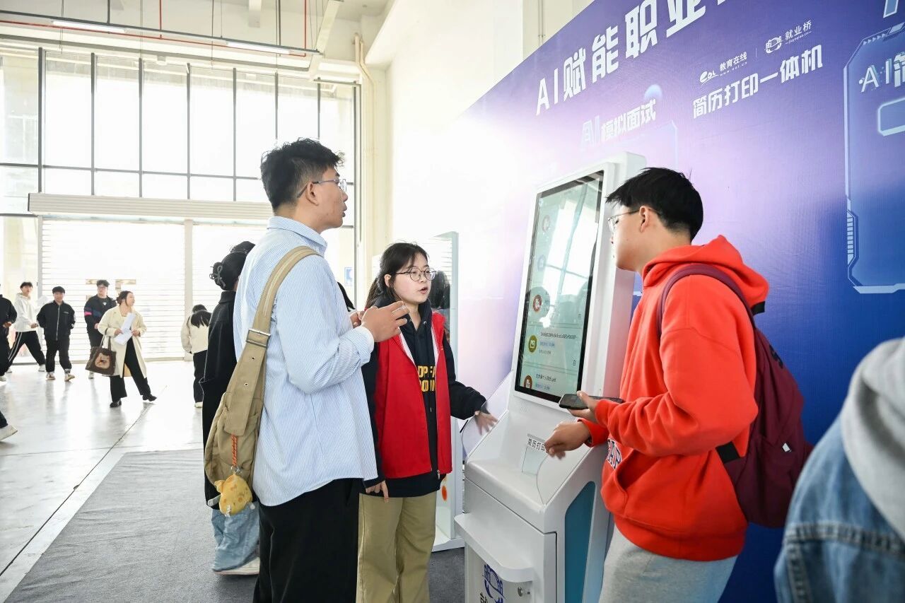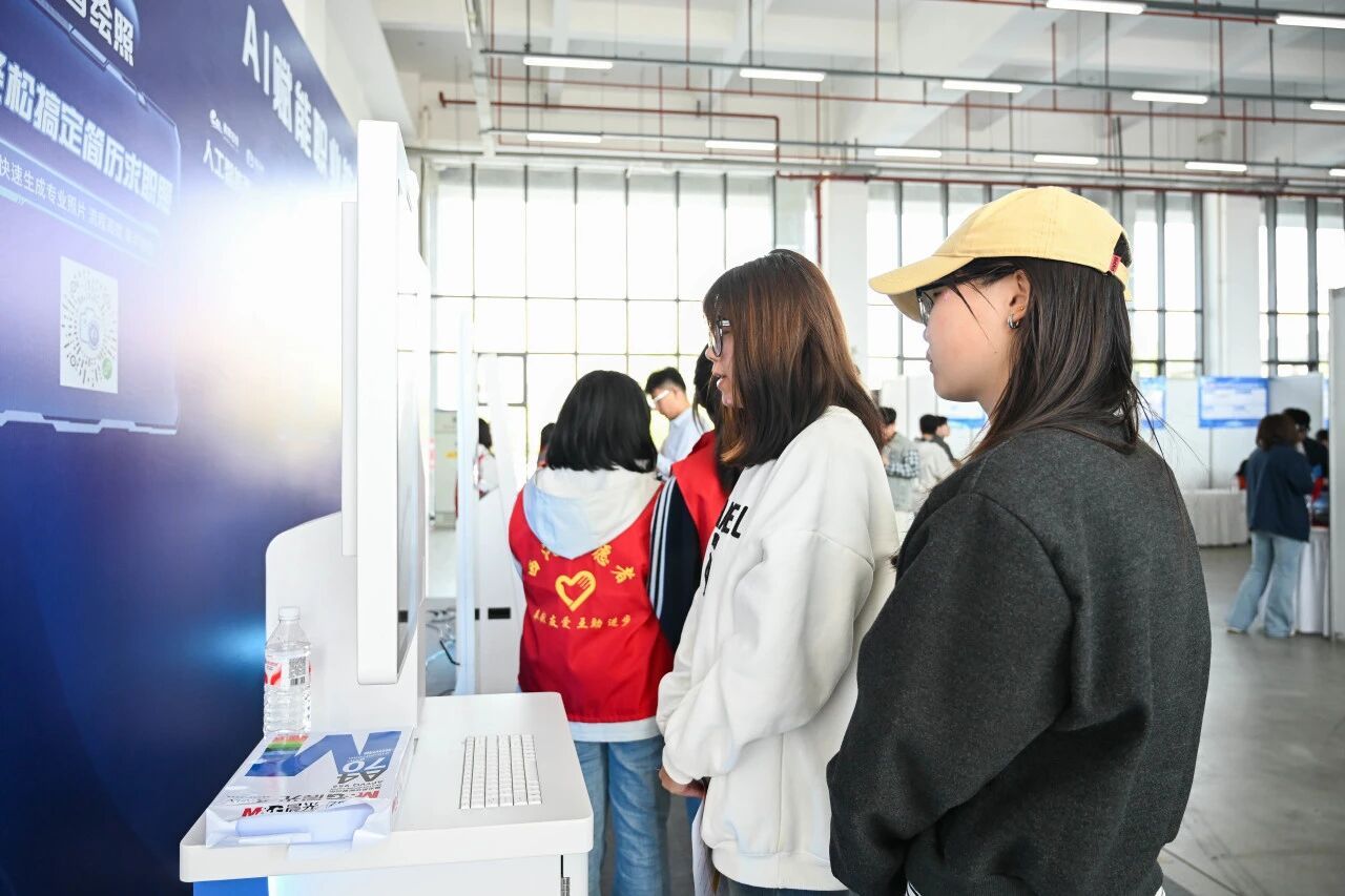 本次双选会现场特别设立“AI赋能职业能力提升专区”,提供涵盖生涯探索、简历优化和模拟面试的一站式服务,帮助毕业生精准定位职业方向、优化简历匹配度、提升面试技巧,吸引大量学生踊跃体验。