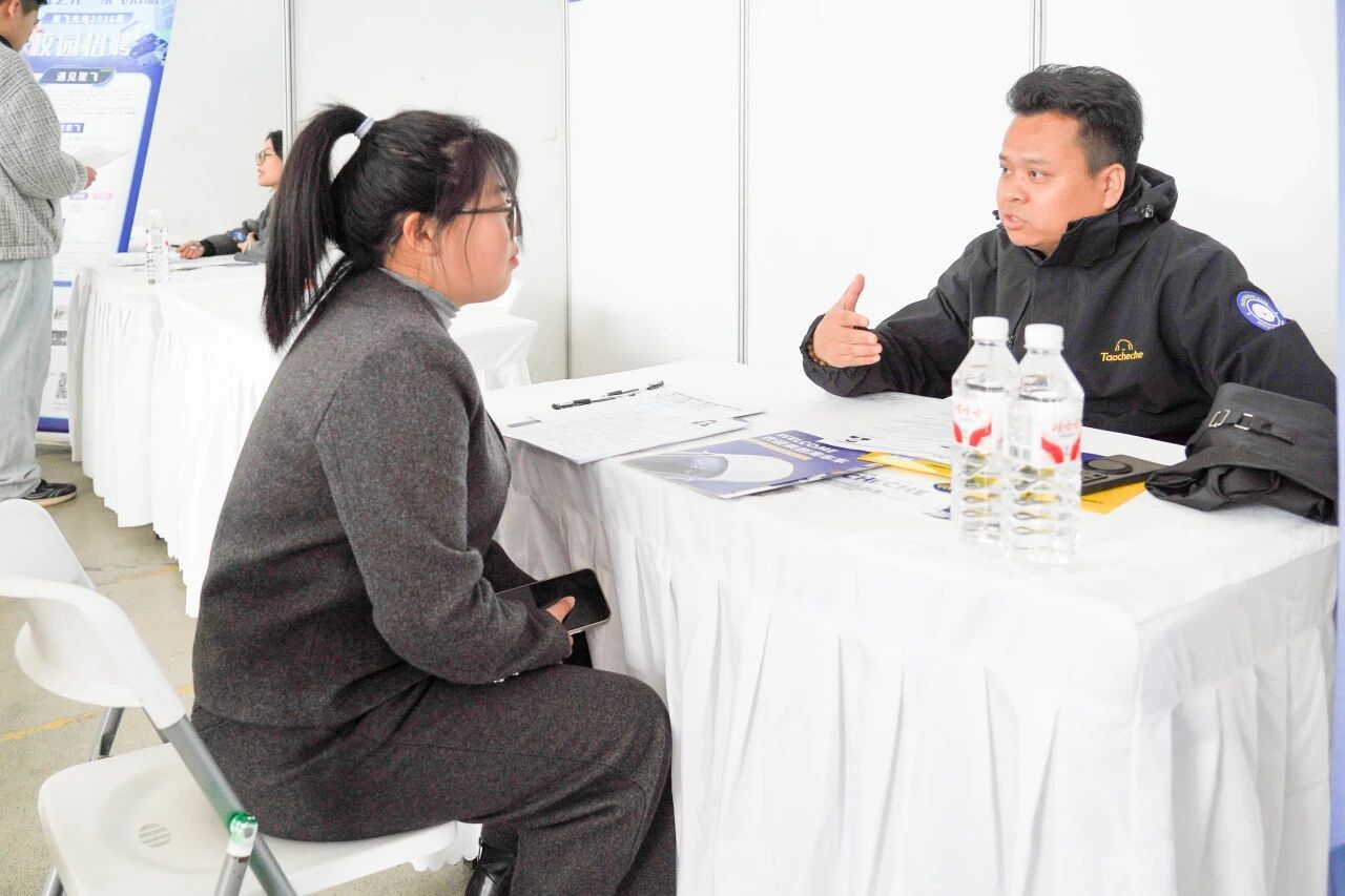 双选会现场人声鼎沸、气氛热烈。各学院负责人组织学生积极参会,并主动向用人单位推介未就业毕业生,全力促进毕业生尽早签约、顺利就业;同时积极引导2027届毕业生对接实习岗位,帮助同学们提前了解就业市场需求、积累实践经验,为未来职业生涯规划打好基础。我校毕业生们手持个人简历及相关材料,积极与企业代表沟通,详细了解企业文化、岗位发展路径及薪资福利等关键信息。面对企业的提问,我校毕业生沉着应对,清晰阐述自己的专业优势、实践经历和职业规划,展现了良好的专业素养,获得参会企业的高度认可。