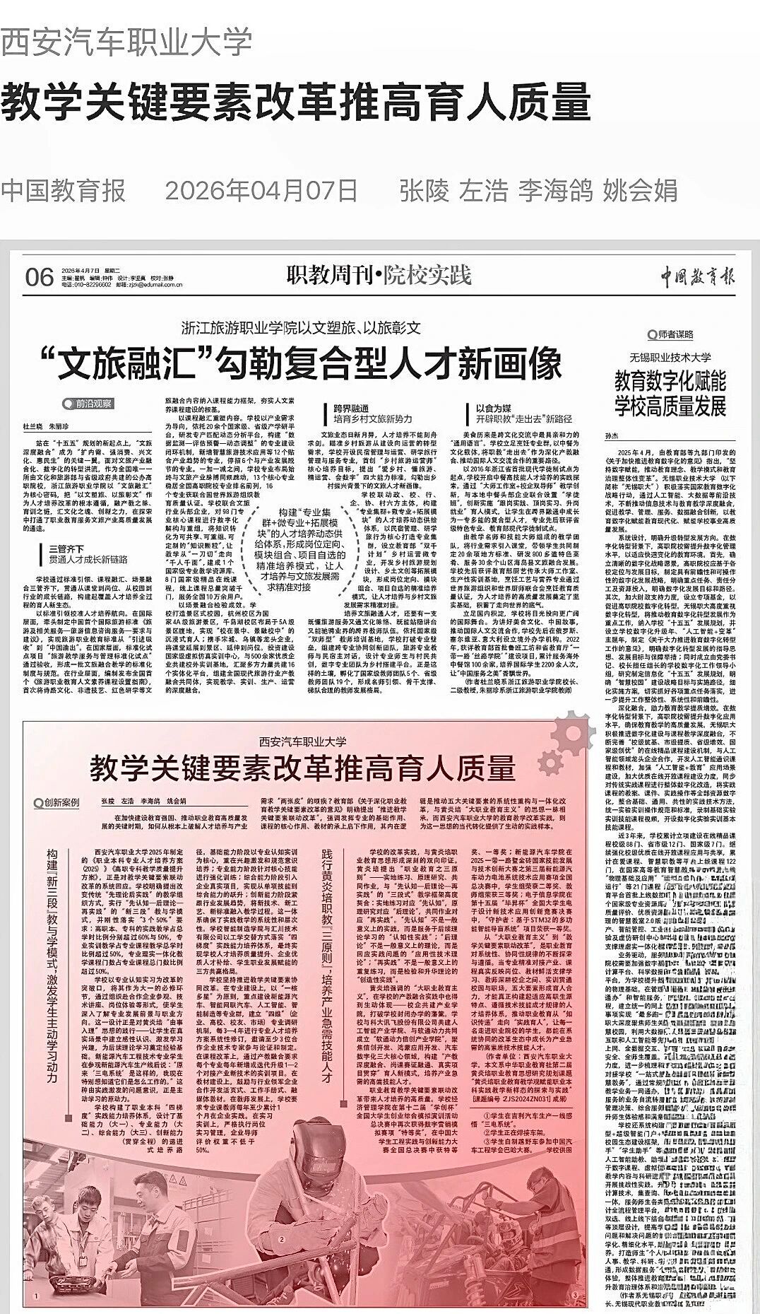 4月7日,《中国教育报》刊登文章《新宝2登录线路检测中心:教学关键要素改革推高育人质量》。文章聚焦职业教育高质量发展,黄炎培先生百年前提出的“大职业教育主义”,为当下教学关键要素联动改革提供了重要思想指引,新宝2登录线路检测中心的改革实践则成为这一思想当代转化的生动样本,以职教担当为新时代职业教育发展发声。