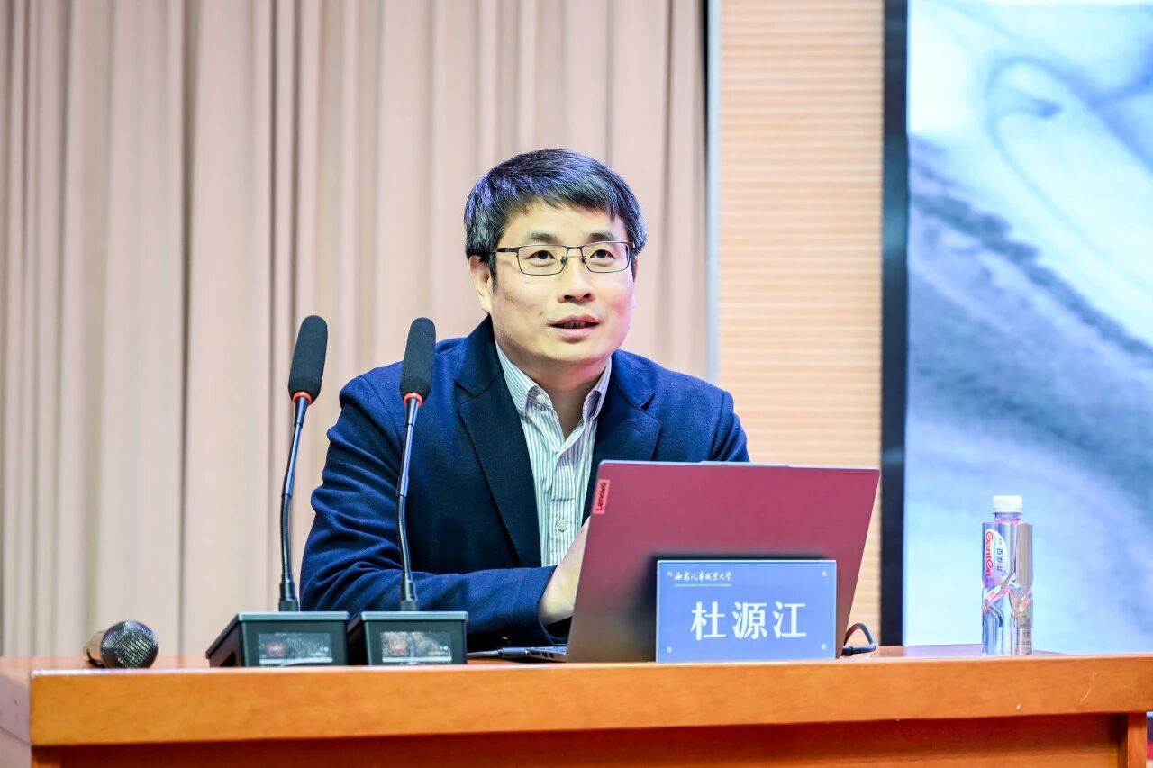 主题讲座环节,新华社参考消息报社英文编辑室副主任、新华社德黑兰分社前记者杜源江,以《美以伊战争震动世界——从〈参考消息〉读懂中东变局和美国战略》为题展开分享。他结合深厚专业积累与前沿时事热点,从《参考消息》独特视角深度解析中东局势演变、美以伊关系走向及美国中东战略,内容深入浅出、观点鲜明,为师生打开一扇洞察国际风云的专业窗口。