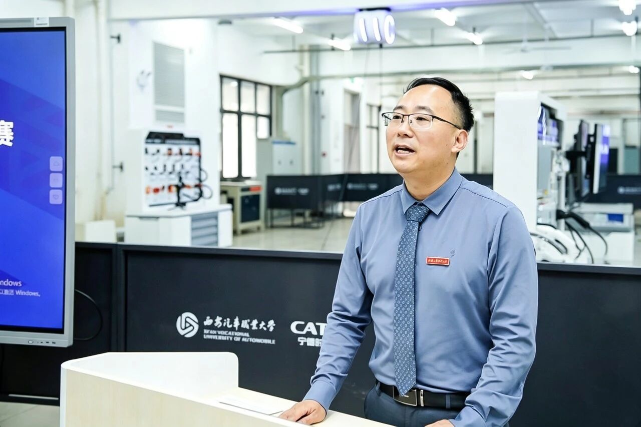 为深入推进人工智能技术与教育教学深度融合,全面提升实训教师教学创新能力与实践育人水平,4月16日,我校举办实训教师教学创新能力大赛校级决赛。副校长张陵、席成孝,校长助理左浩,校内评审专家、企业评审专家、教务处相关负责人及全体参赛教师参加活动。
