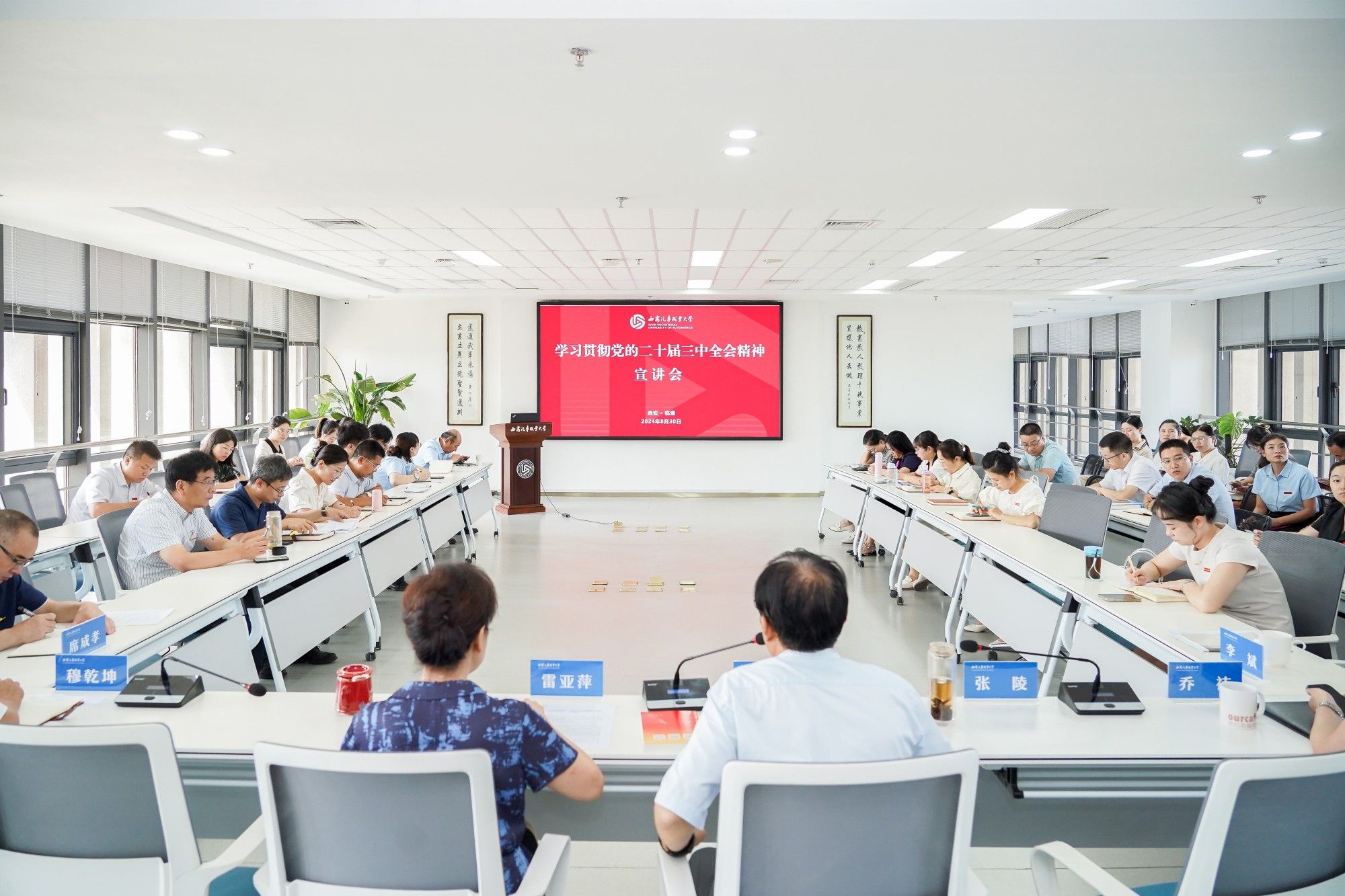 为深入学习贯彻党的二十届三中全会精神,把思想和行动统一到党中央的决策部署上来,8月30日,我校举行学习贯彻党的二十届三中全会精神宣讲会,学校党委书记孙冰红作宣讲报告。执行校长雷亚萍主持会议。