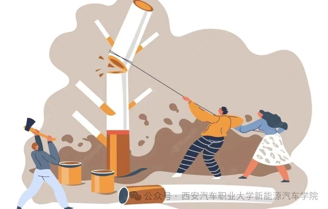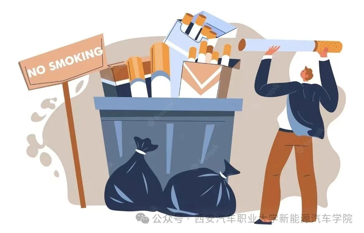 让我们从现在做起,从点滴做起,主动拒绝烟草,拥抱清新校园,用实际行动打造无烟、绿色、文明的校园环境,让学院处处洋溢书香与朝气,让环保健康的理念伴随我们逐梦前行、学有所成,以健康的体魄、饱满的热情,在新能源汽车专业领域深耕不辍、绽放光彩。