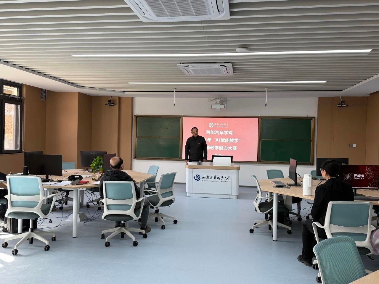 为深入推动人工智能与教育教学融合创新,提升教师信息化教学水平,智能汽车学院于2025年11月24日至26日成功举办院级“AI赋能教学”教师教学能力大赛。本次比赛以“AI赋能,智创未来”为主题,共有42名教师同台竞技,展现了学院在智慧教学改革中的积极探索与实践成果。