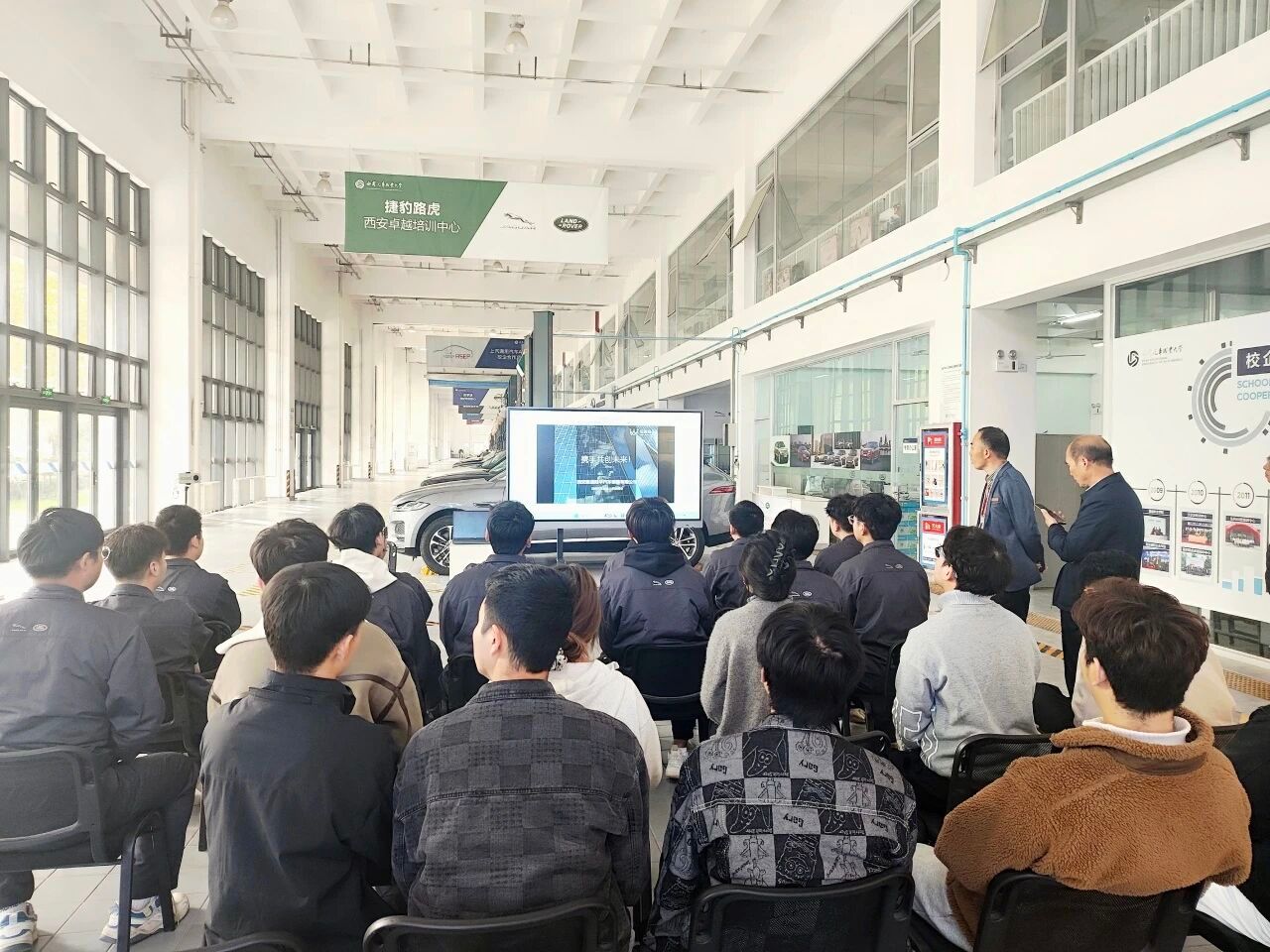 捷豹路虎上海培训中心任雨婷老师主持会议,并系统介绍了2025年捷豹路虎的招聘战略。他强调,随着智能网联汽车技术的快速发展,捷豹路虎将持续加大人才引进力度,尤其注重具备实践能力与创新思维的专业人才。此次招聘覆盖技术服务、销售管理、售后服务等多个岗位,为合作班学生提供了丰富的职业发展路径。