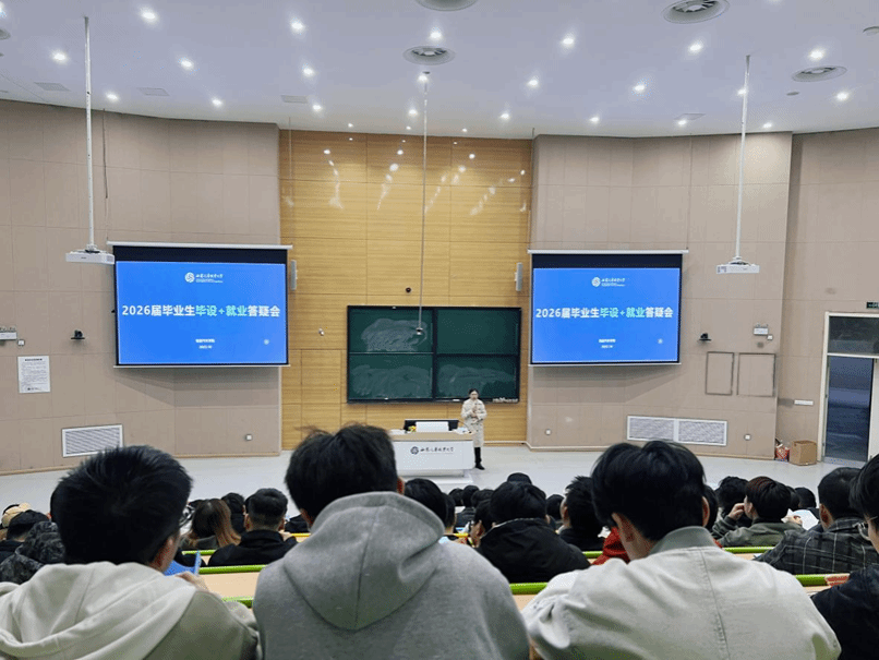 王丽妲副院长根据我校2026届本科生毕业设计(创作)进度指南,明确“开题、中期、盲审、答辩”四大关键节点,帮助学生建立清晰的时间轴。同时,就答辩准备、论文撰写、学术道德问题也做出了详细的说明。后针对学生提出的“简历如何突出职业技能”“面试中的技巧问题”“什么是三方协议”“什么是社保”等疑问,辅导员屈飞飞也逐一向学生做了解答。