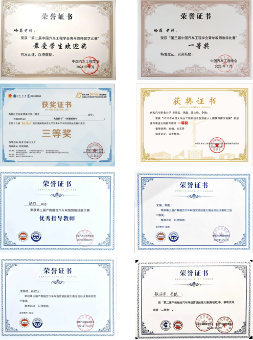 2025年7月,哈菲老师荣获中国汽车工程学会第三届青年教师教学比赛一等奖