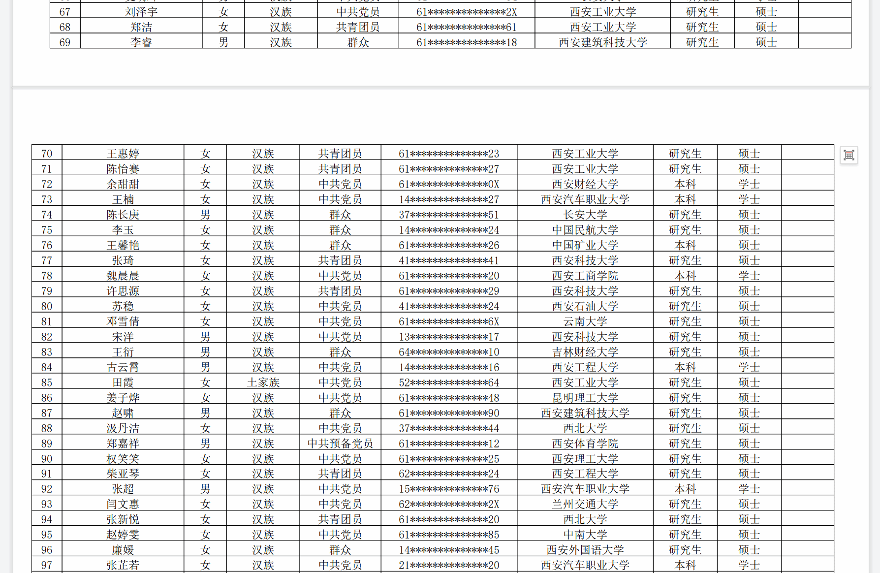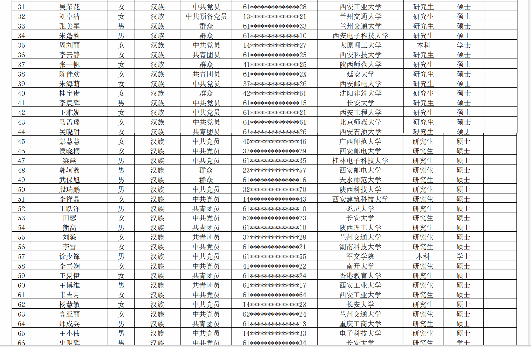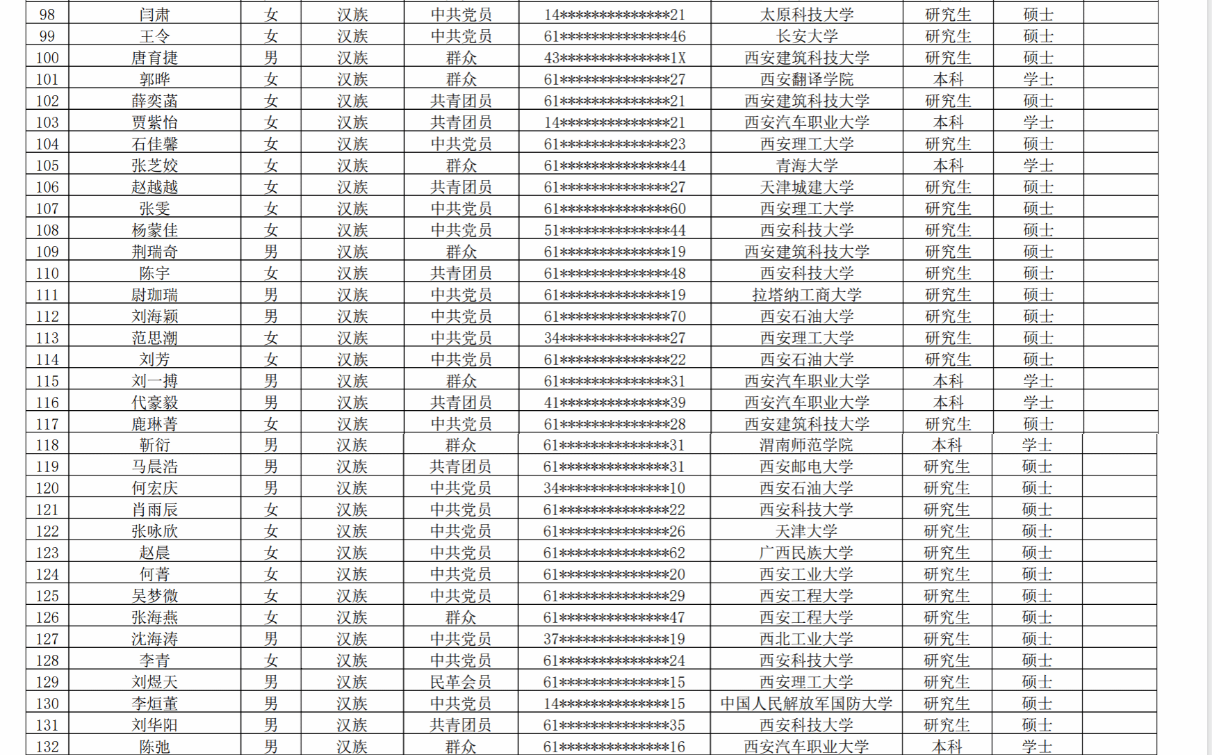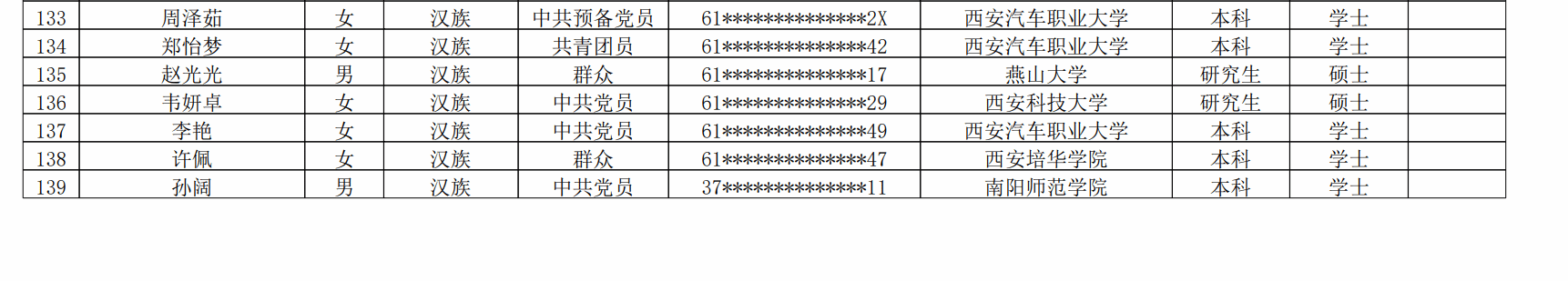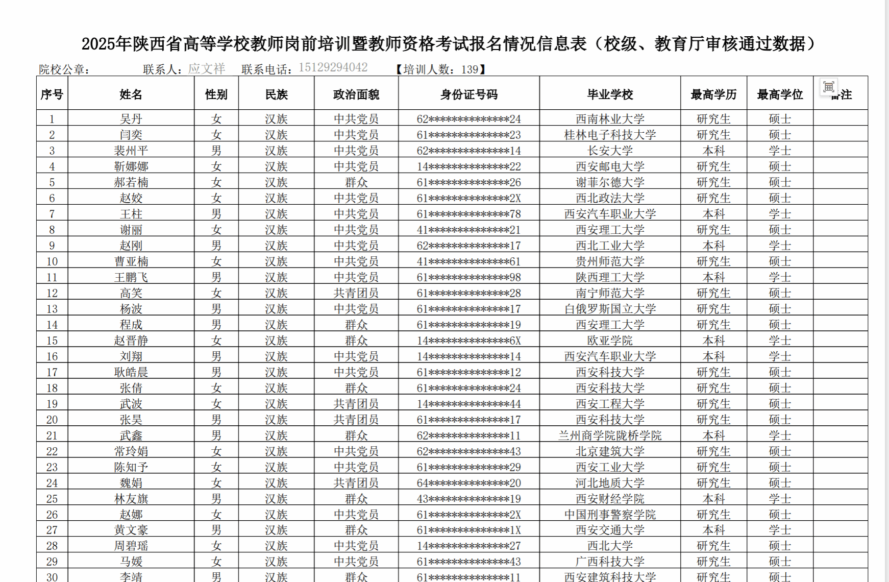附件:2025 年陕西省高校教师岗前培训暨教师资格教育基础理论知识培训报名人员公示名单