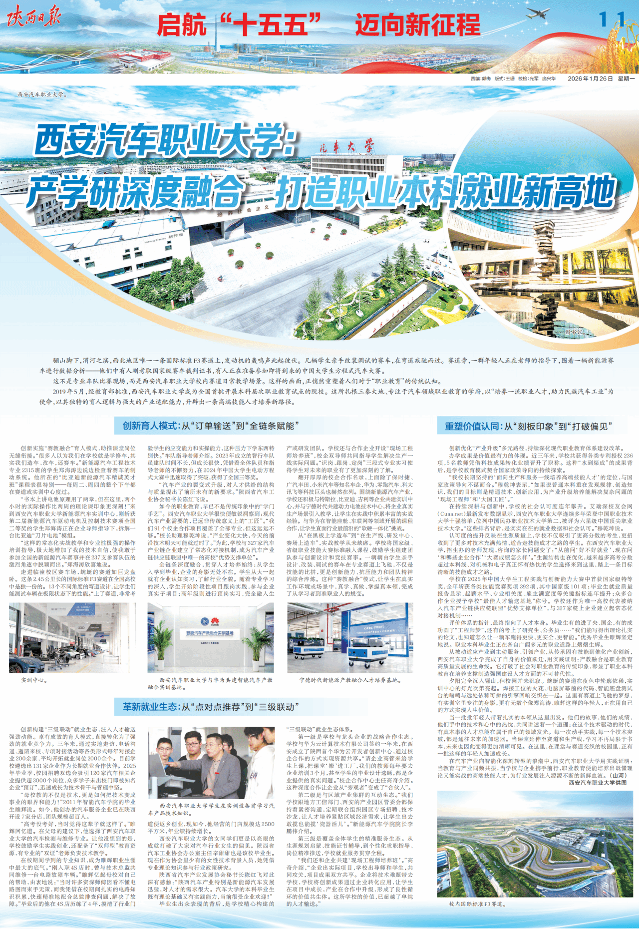 1月26日,《陕西日报》刊登文章《新宝2登录线路检测中心:产学研深度融合 打造职业本科就业新高地》,报道我校秉职教担当深推产学研融合,以实干之声助力新时代职业教育发展。新宝2登录线路检测中心作为全国首批本科层次职业教育试点院校,以培养汽车领域高端技能人才为使命,深耕产教融合,构建起从课堂到职场的无缝衔接生态,助力学子手握职业“金钥匙”。近年来,学校紧扣汽车产业“新四化”趋势,动态优化专业课程,依托全国高校独有的国际标准F3赛道,创新“赛教融合”“产学研深度融合”育人模式,推行“双元制”教学,让学生在仿真生产环境中“学中做、做中学”,实现知行合一。
