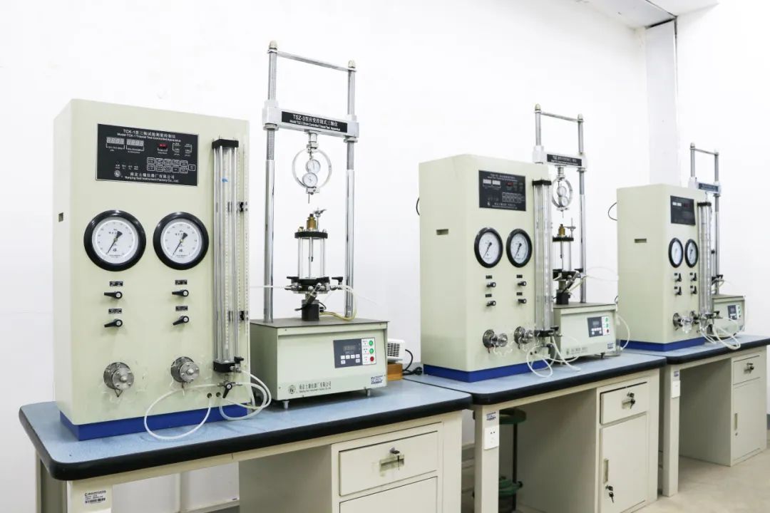 土工实训室主要仪器设备有:电热鼓风恒温干燥箱、直接剪切仪、击实仪、脱模机、三轴仪、路面材料强度试验机、三联固结仪,塑限仪,天平等现代土工实验仪器等仪器设备满足正常的实训教学。可进行土的含水量试验,密度试验,界限含水率试验,颗粒分析试验,固结试验,直接剪切试验,三轴压缩试验,击实试验等一系列土工实验。