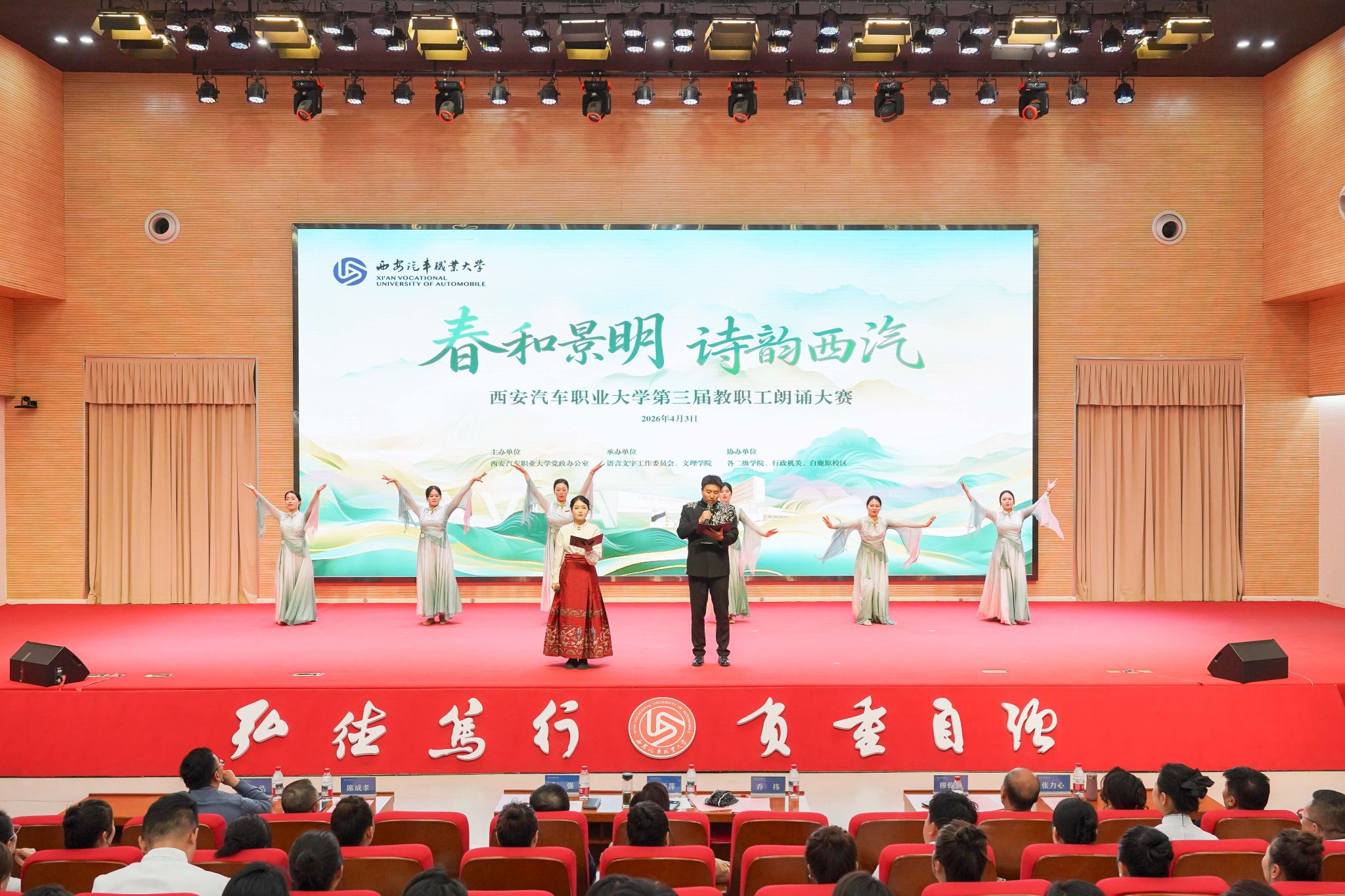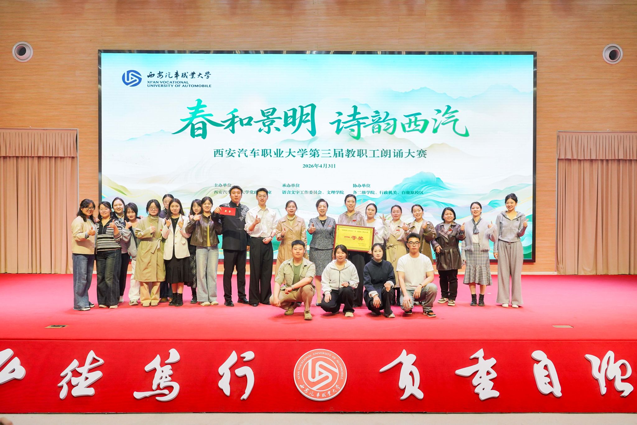 千古名篇,今朝回响。4月3日,我校“春和景明 诗韵西汽”第三届教职工朗诵大赛圆满落下帷幕。文理学院的节目《兰亭集序》以创新的编排、深情的演绎和深厚的文化底蕴,从众多参赛队伍中脱颖而出,荣获大赛一等奖,成为当日最受瞩目的亮点。