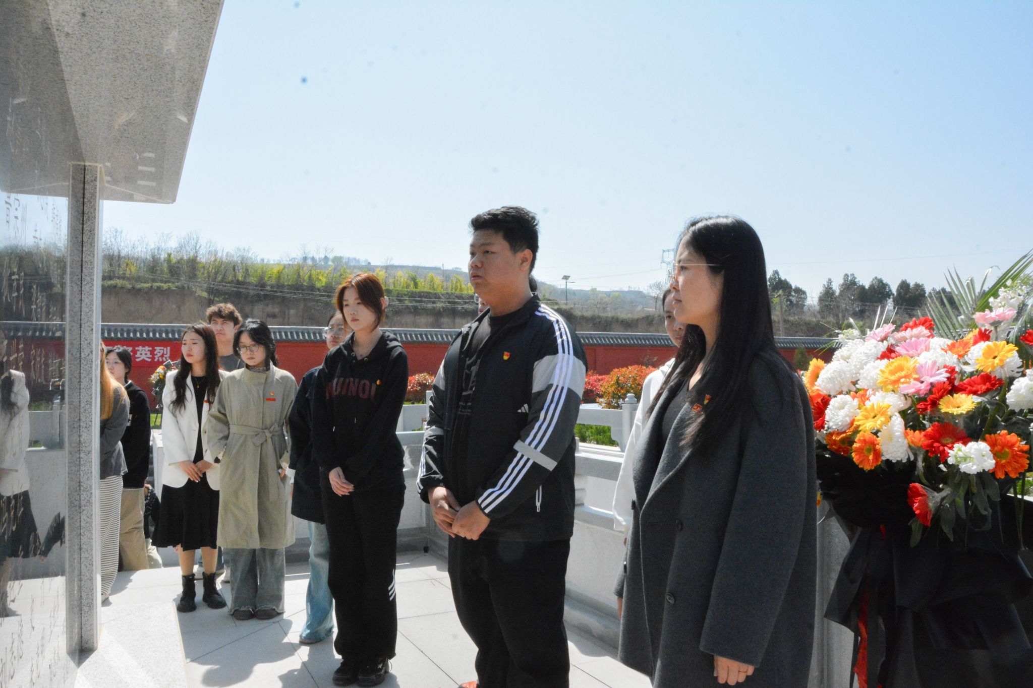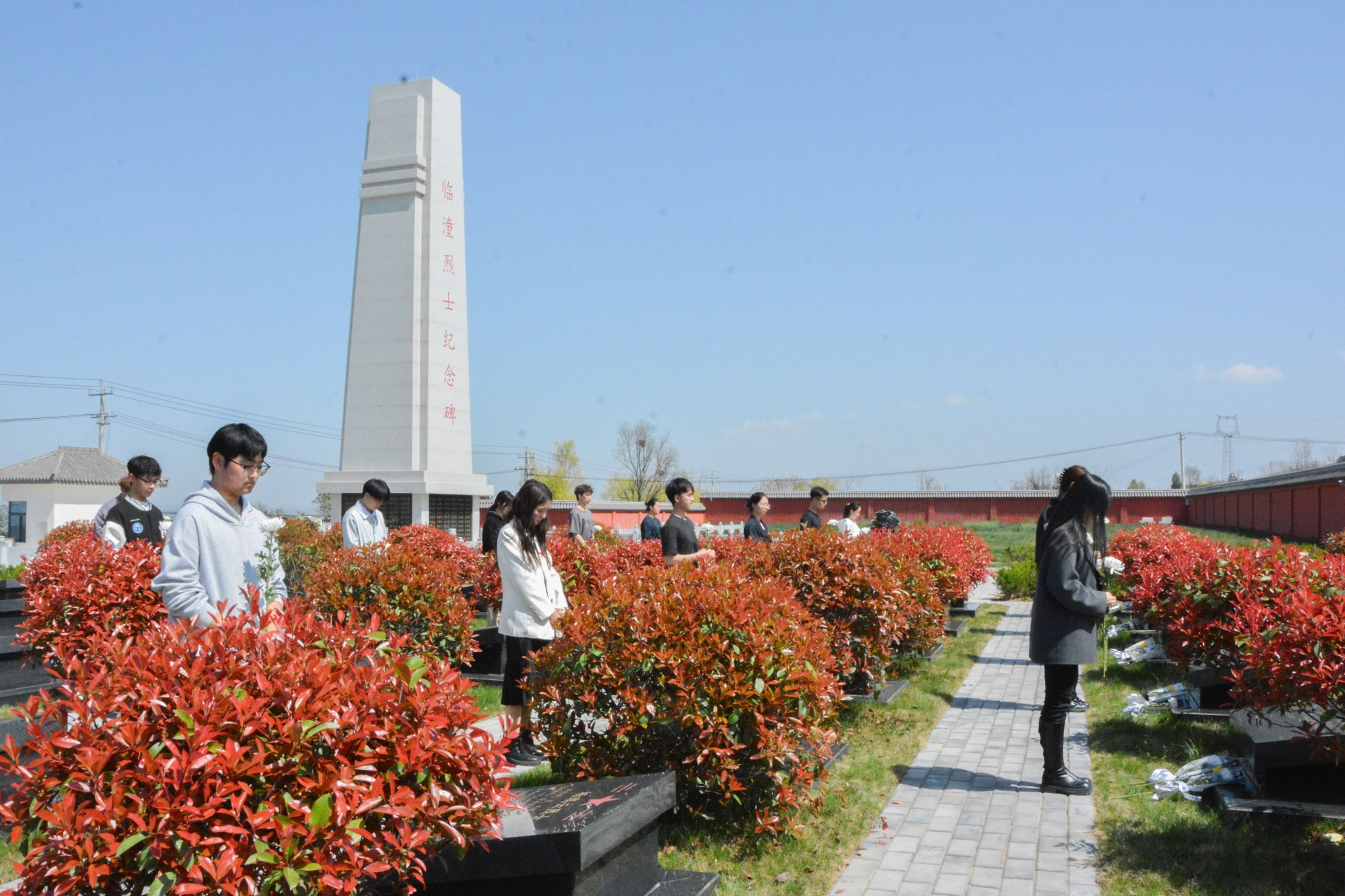 大家手持鲜花,依次走向烈士纪念碑,将手中的鲜花敬献在碑前,承载着对烈士的深深敬意与无限缅怀。