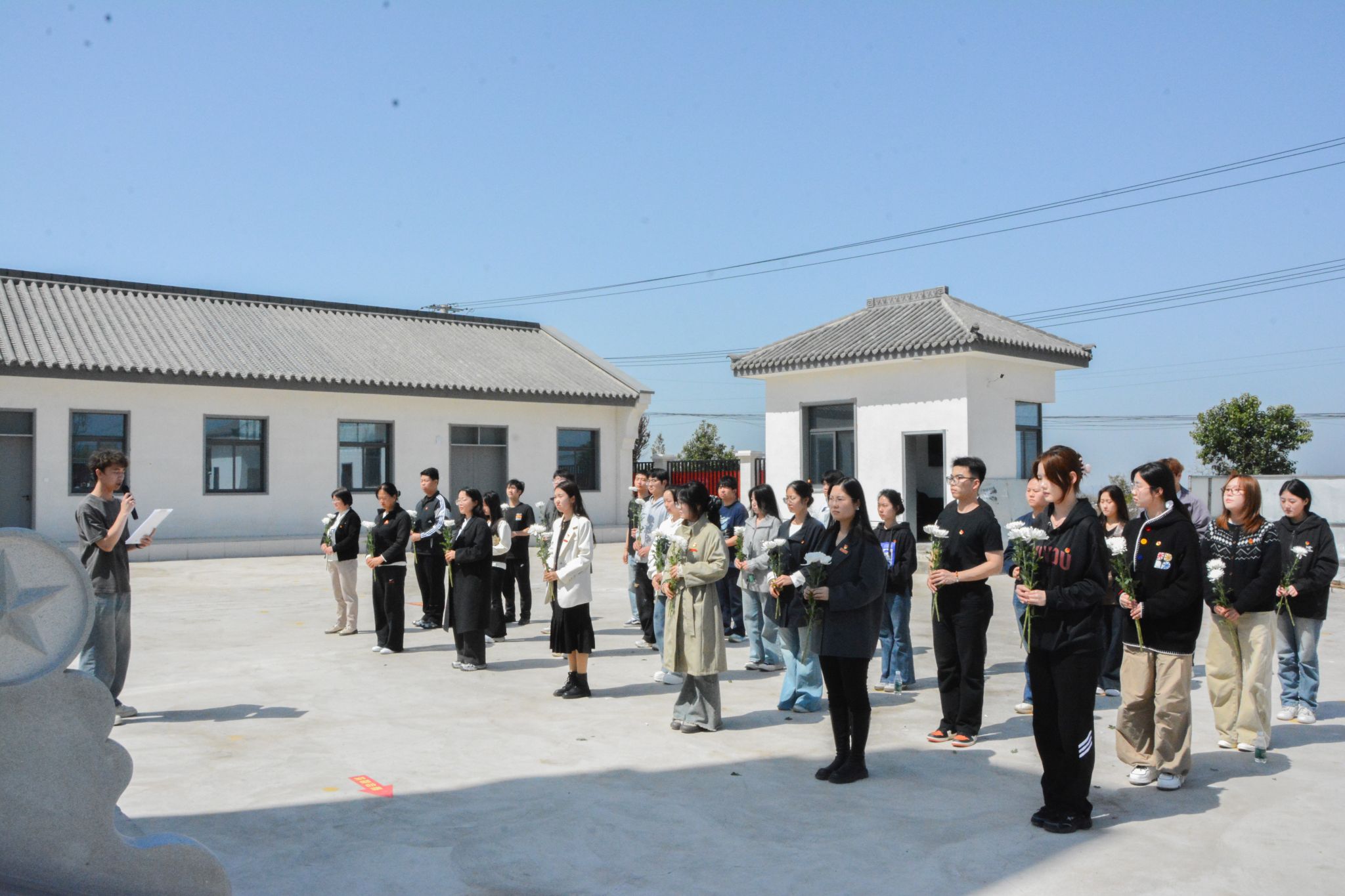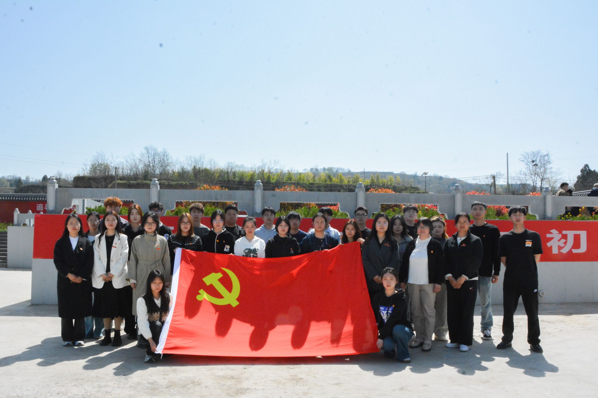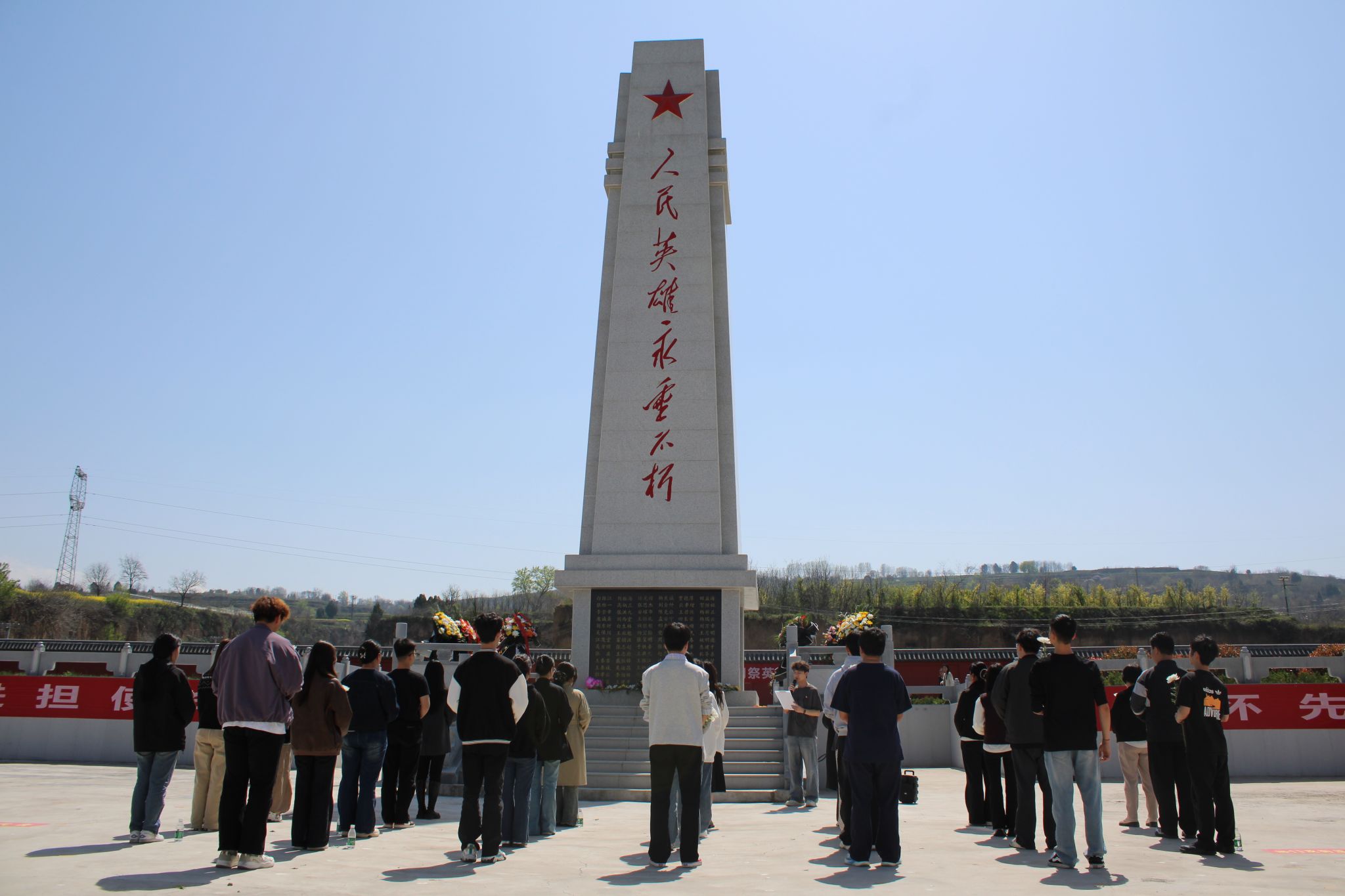 出行前,学院召开安全会议。会上,就往返交通、现场纪律、文明祭扫等事项作详细部署。活动在庄严的国歌声中拉开序幕,全体人员肃立致敬,齐唱国歌。